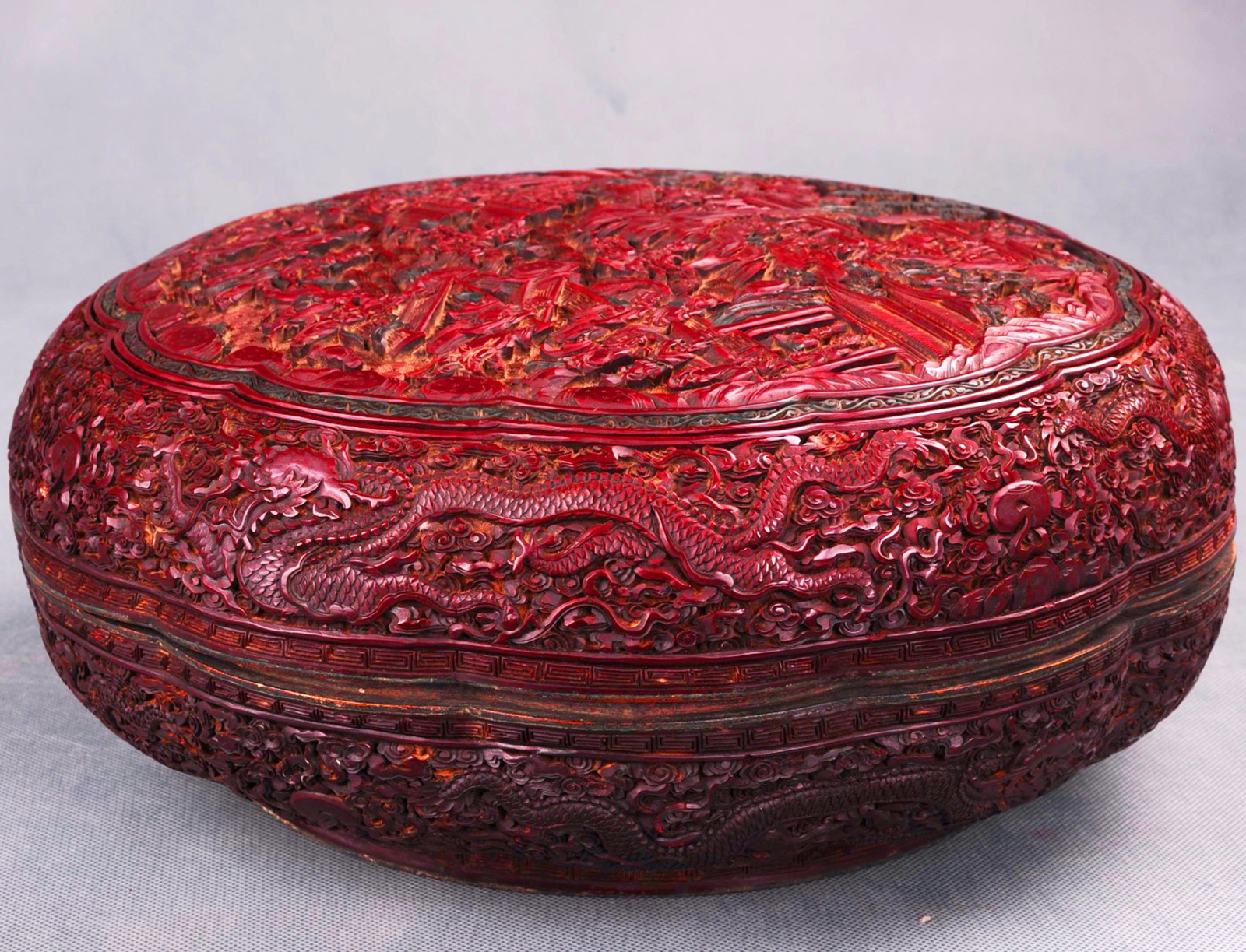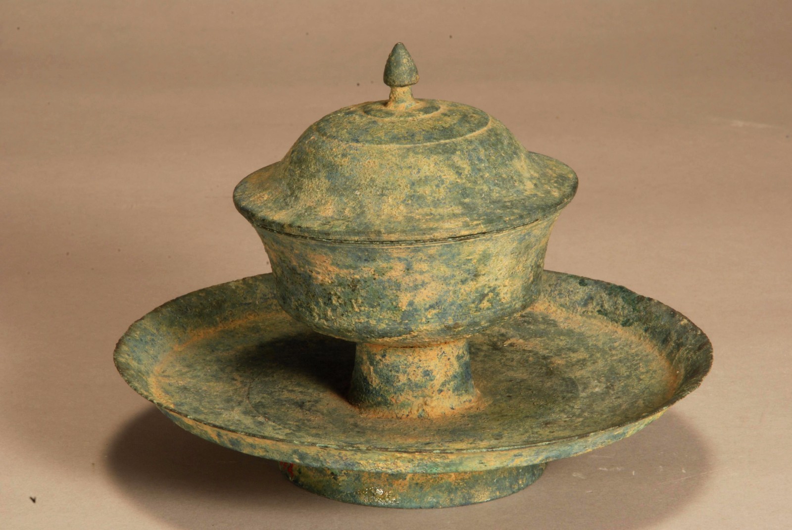 查看更多内容1976年贵州省博物馆收购的“尘定轩”斗彩山水人物盖碗,通高6.8厘米,口径6.7厘米,足径2.7厘米。敞口,圈足,盖可作倒置小碟,盖顶圈钮。此盖碗体...