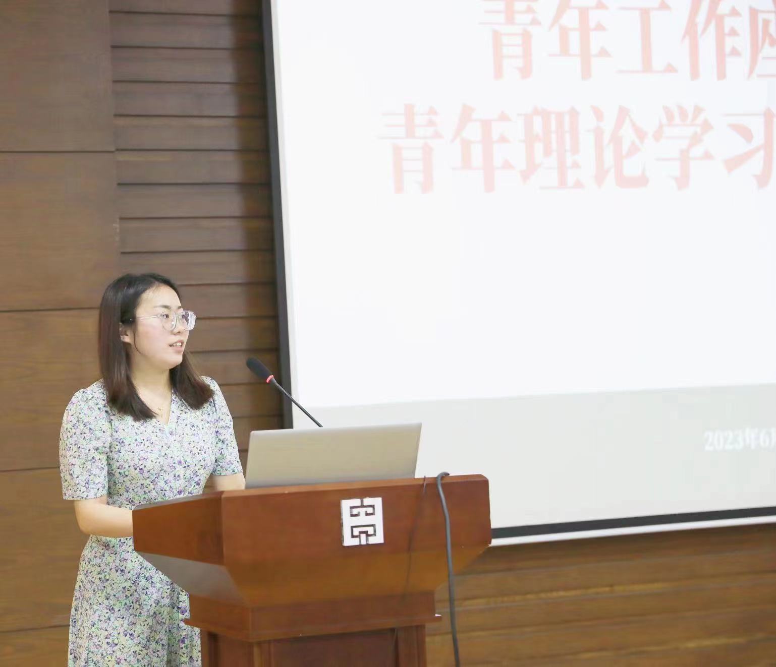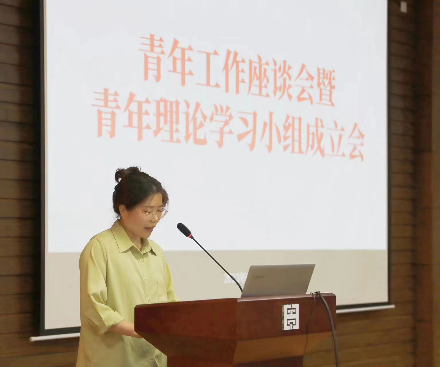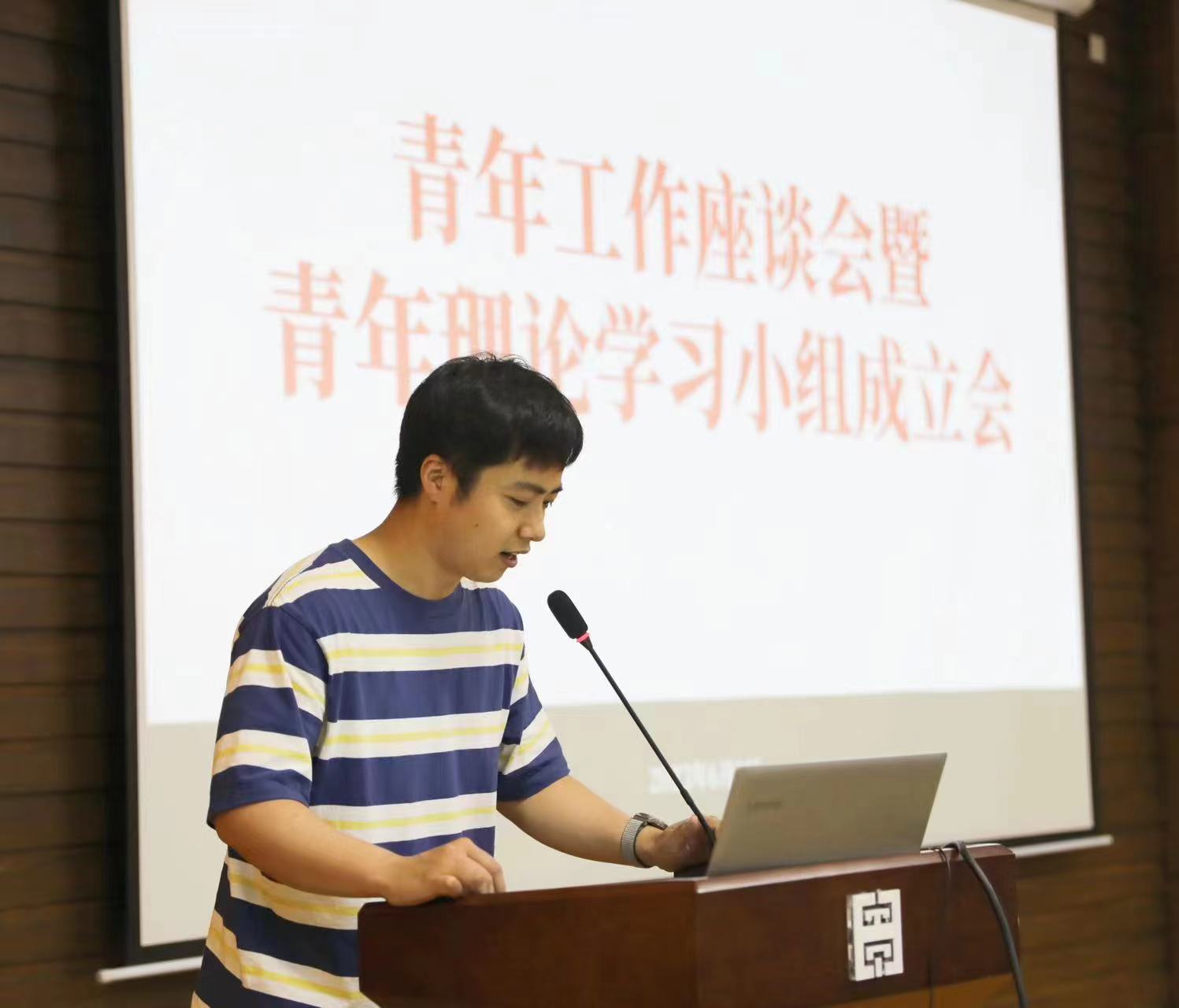 随后,青年理论学习小组组长通过幻灯片形式,向参会青年详细介绍了青年理论学习小组的概念、学习内容和组织形式等。馆党委副书记、馆长李飞宣读了成立青年理论学习小组的通知并对本次座谈会作总结发言,对青年理论学习小组提出了几点要求。他强调青年人要珍惜好时光、把握好时机,不断修炼自我,把个人理想融入社会、融入党和国家事业发展中。他指出,青年理论学习小组要做好毕业生和社会人之间的“缓冲带”,当好新进单位年轻人的“大哥哥”“大姐姐”,把青年人带向正道。要当好贵博高质量发展的生力军,充分激发青年人活力,释放创造力,不断用学习成果指导实践,接续奋斗,成为博物馆未来发展的明亮希望。要把青年理论学习小组做成党建和业务深度融合的好平台,促进博物馆党建和业务工作的高质量发展,为贵州的文博事业添砖加瓦,为新时代贵州发展作出更大贡献。