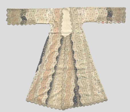 这件来自土耳其的女式刺绣礼服(见图2),运用多色丝线和金属线,在平纹棉布地上锁绣、钉绣,整体色彩柔美,做工精致。