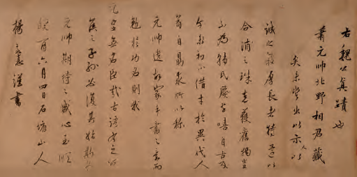 结合《北宋韩琦楷书信札》卷后的跋文分析,蔡景行跋文中的“元帅萧侯珍藏既久”、杨敬德跋的“萧元帅北野相君藏□□矣,未尝出以示人”等句子,与上文石抹家族的历史相印证,可以推测,在一段时间内,韩琦此二帖被石抹家族所收藏,一直传至石抹继祖。石抹继祖将其赠予韩琦九世孙韩诚之。此赠书一事,在当时传为佳话,众多元代名人在卷后题跋记述此事。数位提拔者都生活在元朝中后期,因此可以推定,此二帖在元朝中后期都在韩琦后人手中保存。
