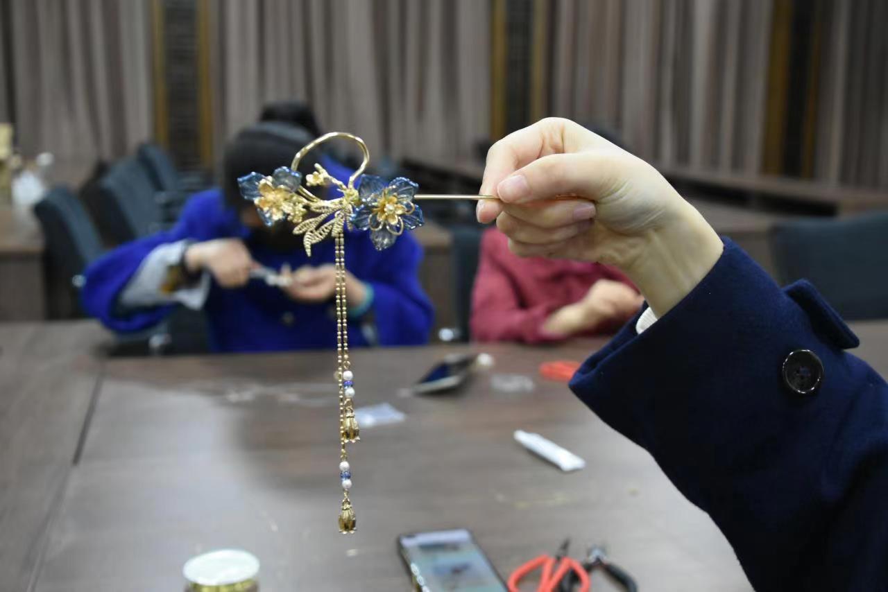 看,一支支发簪,一件件青花瓷瓶,正在观众们的手中产生奇妙的变化。这些精美的发簪,素雅的青花瓷瓶,都是观众们在四月的活动中亲手制作的。